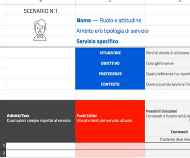 Sul sito di Designers Italia è disponibile il kit “[**Scenari d’uso**](https://docs.italia.it/italia/designers-italia/design-comuni-docs/it/v2019.1/dalla-ricerca-al-prodotto-la-prototipazione/scenari-duso.html)”, dedicato a questa attività. ([Vedi anche gli scenari d'uso di Designers Italia](https://docs.google.com/spreadsheets/d/1QErVMJk8uXn1EiepoJkknO9248UjifRtWsoBnvRhnMU/edit#gid=2055402636)).