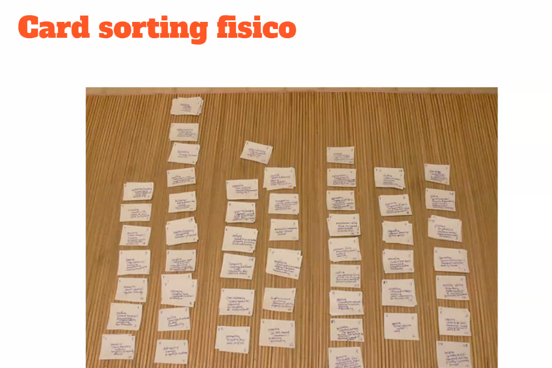 Un metodo centrato sull’utente per realizzare questa attività è il **card sorting**, l’”ordinamento di cartellini”. Serve per capire come gli utenti categorizzano “spontaneamente” un certo ambito di contenuti.
