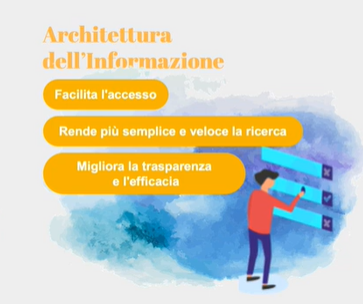 **Un'architettura dell'informazione ben progettata facilita l'accesso alle informazioni e ai servizi digitali**, rendendo più semplice e veloce la ricerca delle informazioni e la fruizione dei servizi pubblici online; contribuisce a migliorare la trasparenza e l'efficacia dell'amministrazione pubblica, in quanto consente di organizzare le informazioni e le funzionalità dei servizi in modo coerente e comprensibile per i cittadini, favorendo così la trasparenza e l'accessibilità delle informazioni.