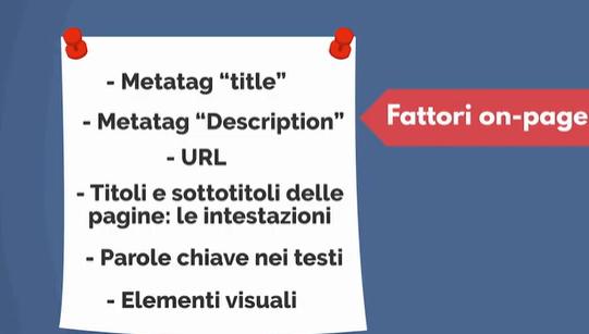 Il tutorial illustra i principali fattori di ottimizzazione dei contenuti per i motori di ricerca.