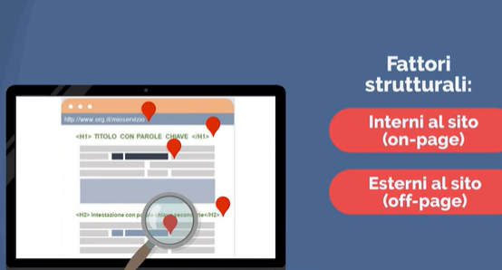 I motori di ricerca lavorano andando a scandagliare specifici fattori strutturali, che possono essere interni, cioè eseguibili all’interno del sito (i cosiddetti fattori on-page) o esterni, cioè eseguibili al di fuori del sito (fattori off-page) e, a seconda della categoria in cui si iscrivono, possono essere più o meno visibili ai nostri occhi.&#x20;