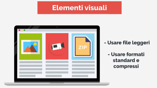 * **Usare file leggeri Immagini e video devono essere caricati sulle pagine in formati standard e compressi**. Ciò ha un effetto positivo sia sulla velocità della pagina, che sulla complessiva esperienza dell'utente&#x20;