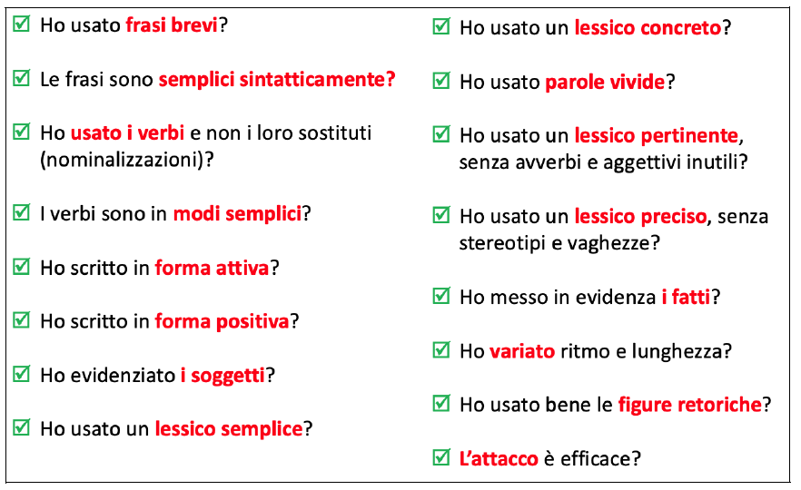 1. scrivere frasi brevi (al massimo 25 parole tra un punto fermo e l’altro);