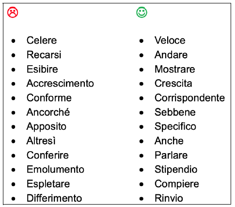 1. usare parole di uso comune, che appartengono al vocabolario di base della lingua italiana (7.000 parole);&#x20;