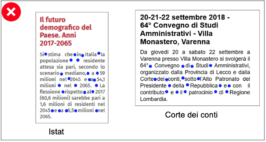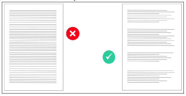 1. spezzare i periodi andando frequentemente a capo e lasciando uno spazio vuoto tra un blocco e l’altro. Un unico blocco di testo viene visto come un ostacolo insormontabile;