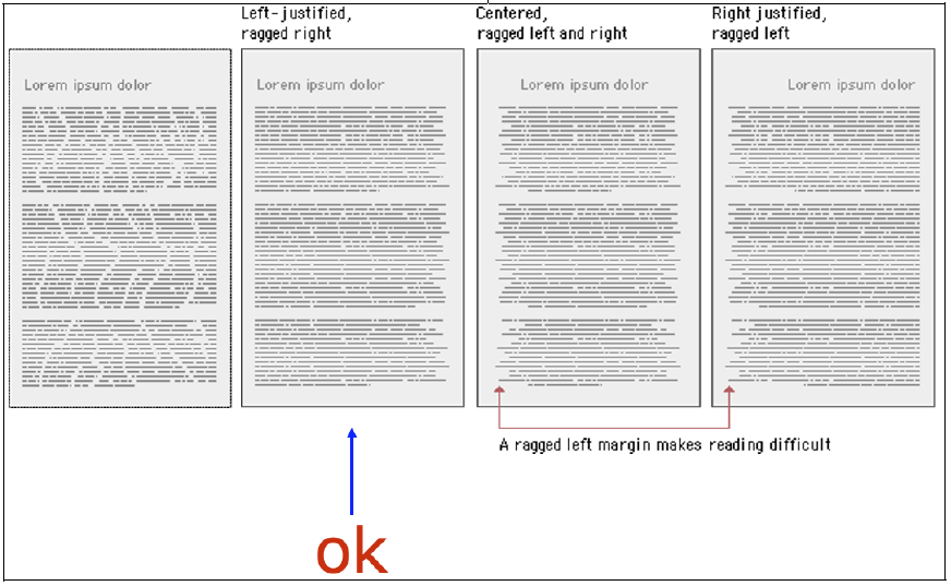 6. è preferibile usare l'allineamento a bandiera dei testi: sempre in accordo con la nostra percezione visiva, il testo giustificato peggiora le leggibilità, in quanto il nostro occhio si sofferma sulle linee generate dagli spazi non uniformi tra una parola e l’altra;&#x20;