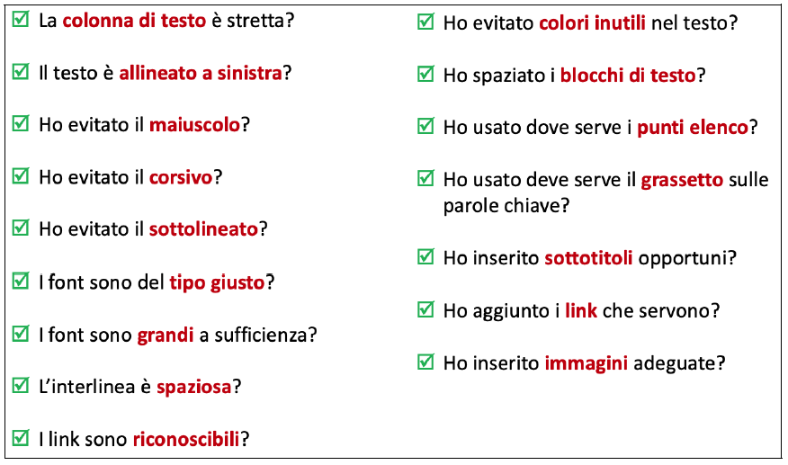 3. usare dove possibile elenchi puntati, in modo da creare testi scansionabili;