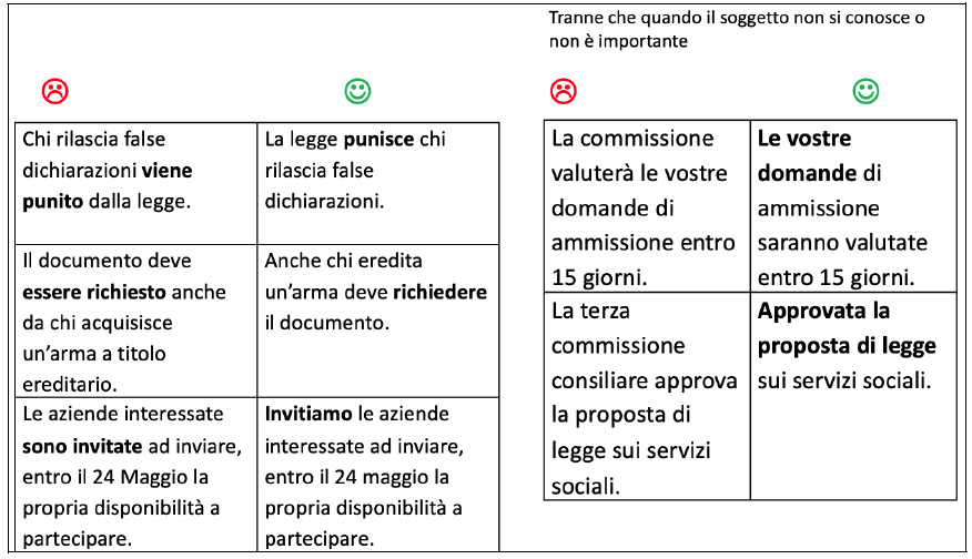 2. elaborare frasi semplici sintatticamente: evitare quindi subordinate e incisi, tenendo vicini soggetto, verbo e predicato;